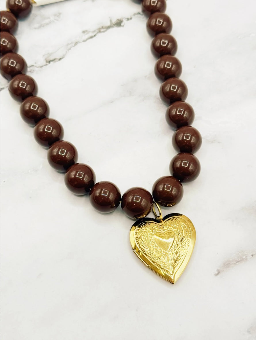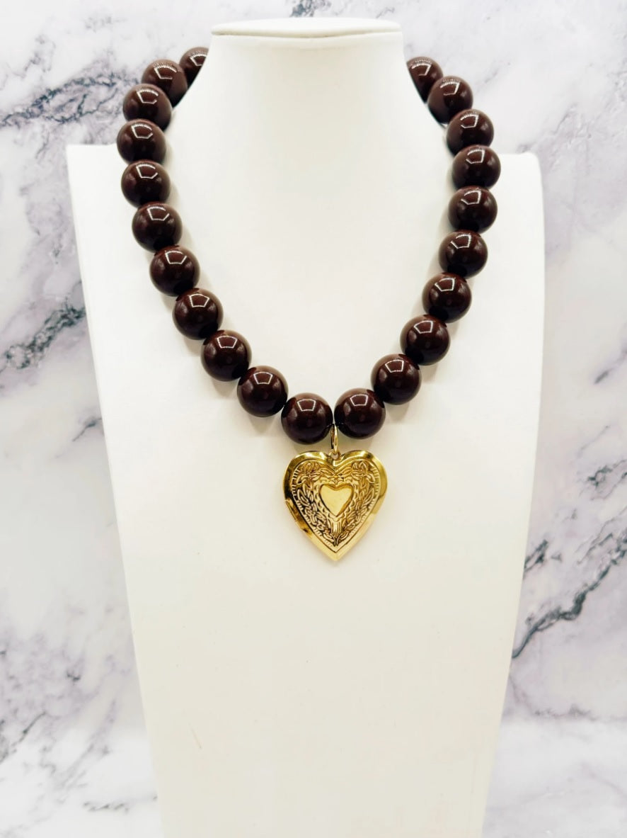 Uma joia com um toque retrô e sentimental, composta por grandes contas de resina brilhantes, dispostas em um cordão resistente e confortável.