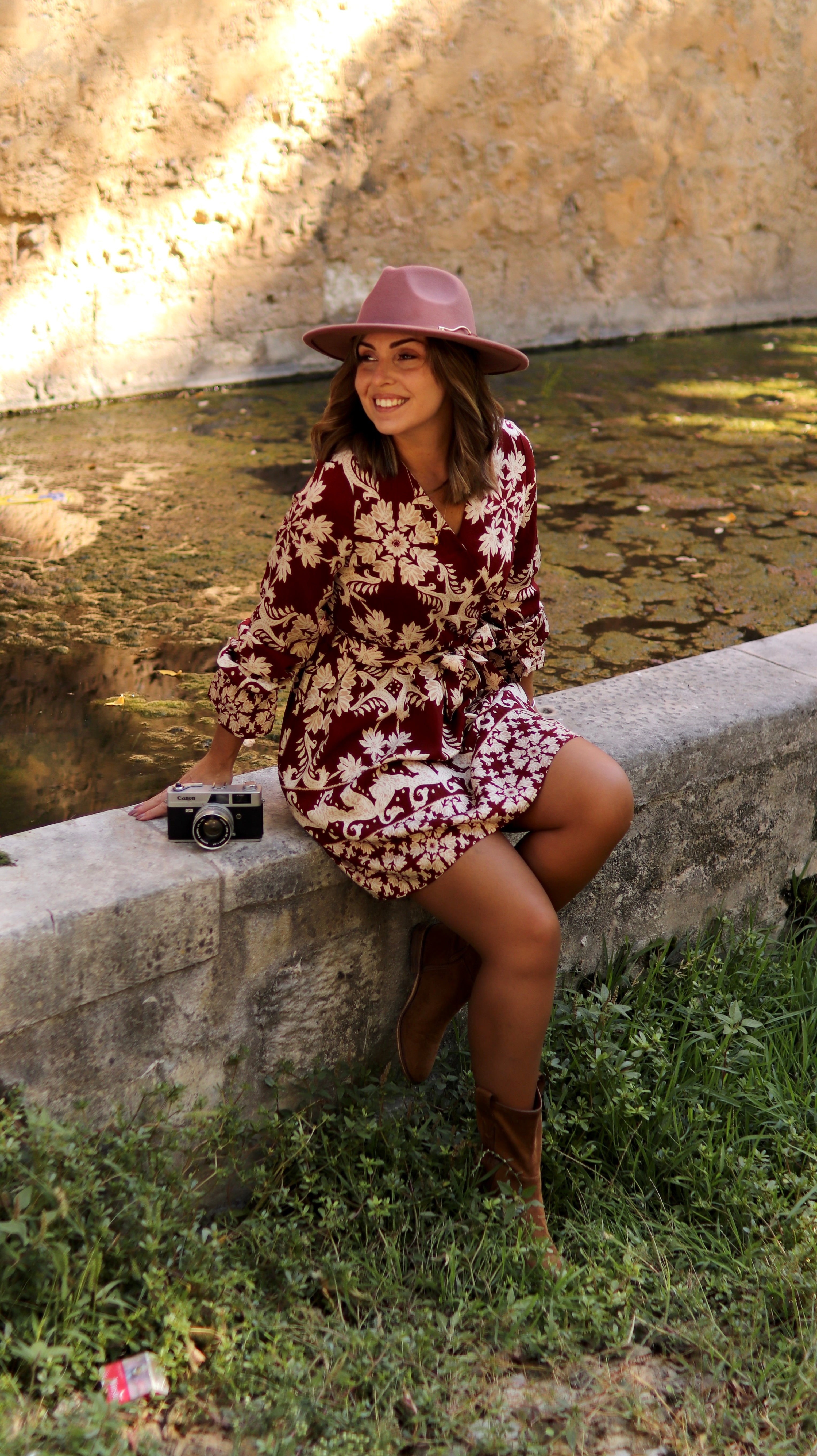 Com o tecido perfeito, com cores e estampa outonal, ele tem efeito cruzado no peito (com mola interior) e manga comprida com terminação de pequeno sino.