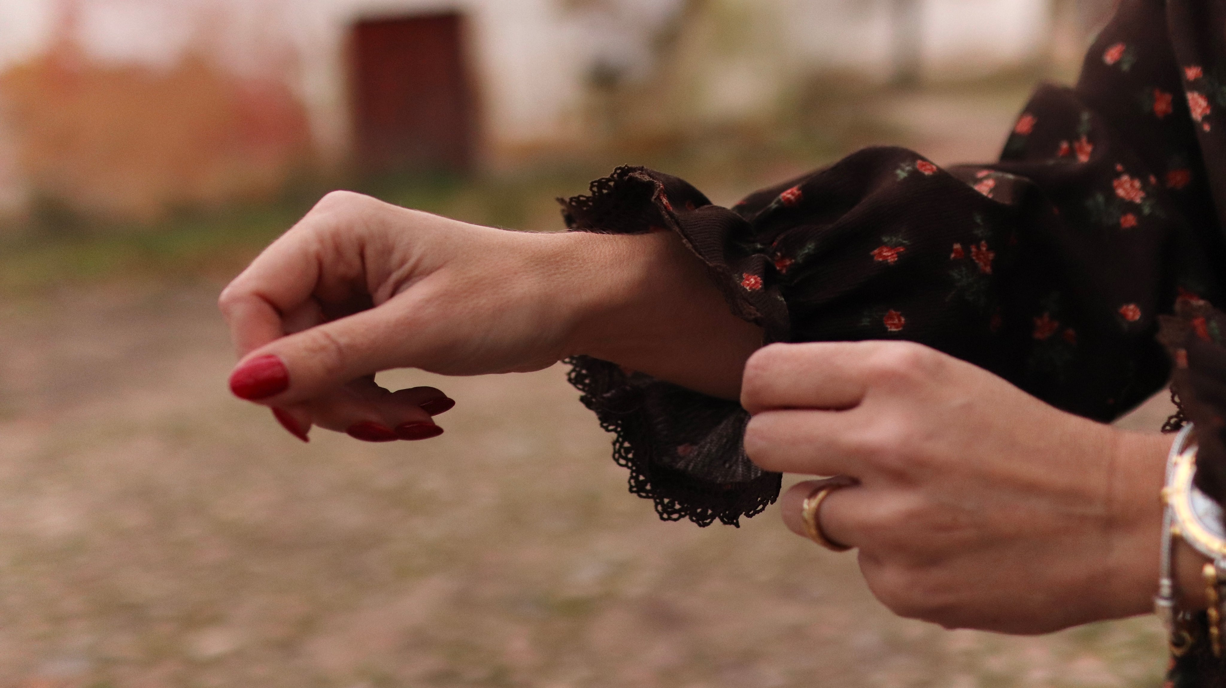 Podemos ajustarlo a nuestro gusto o llevarlo suelto, sin cinturón. Tiene mangas largas con volante en el bajo y botones forrados.