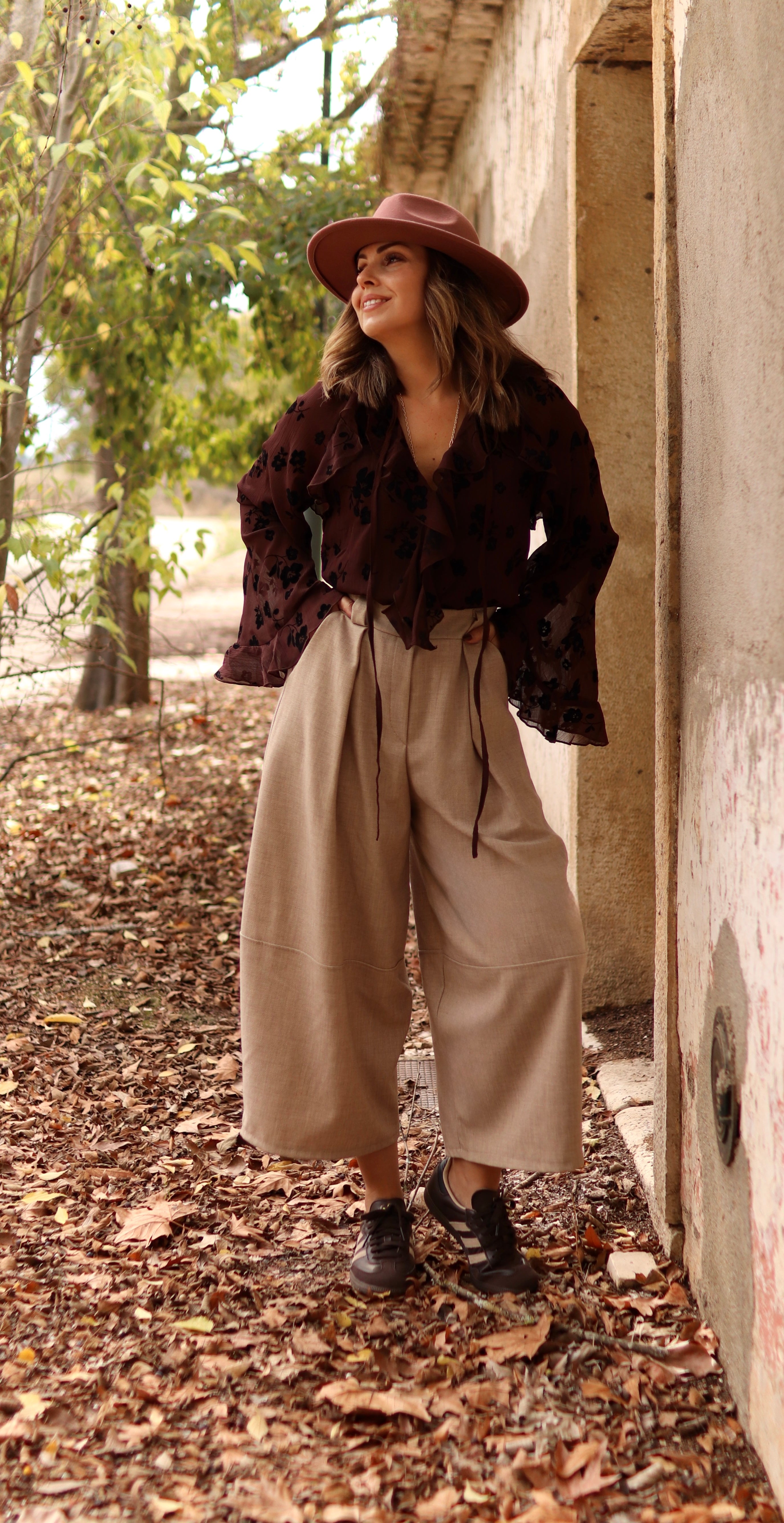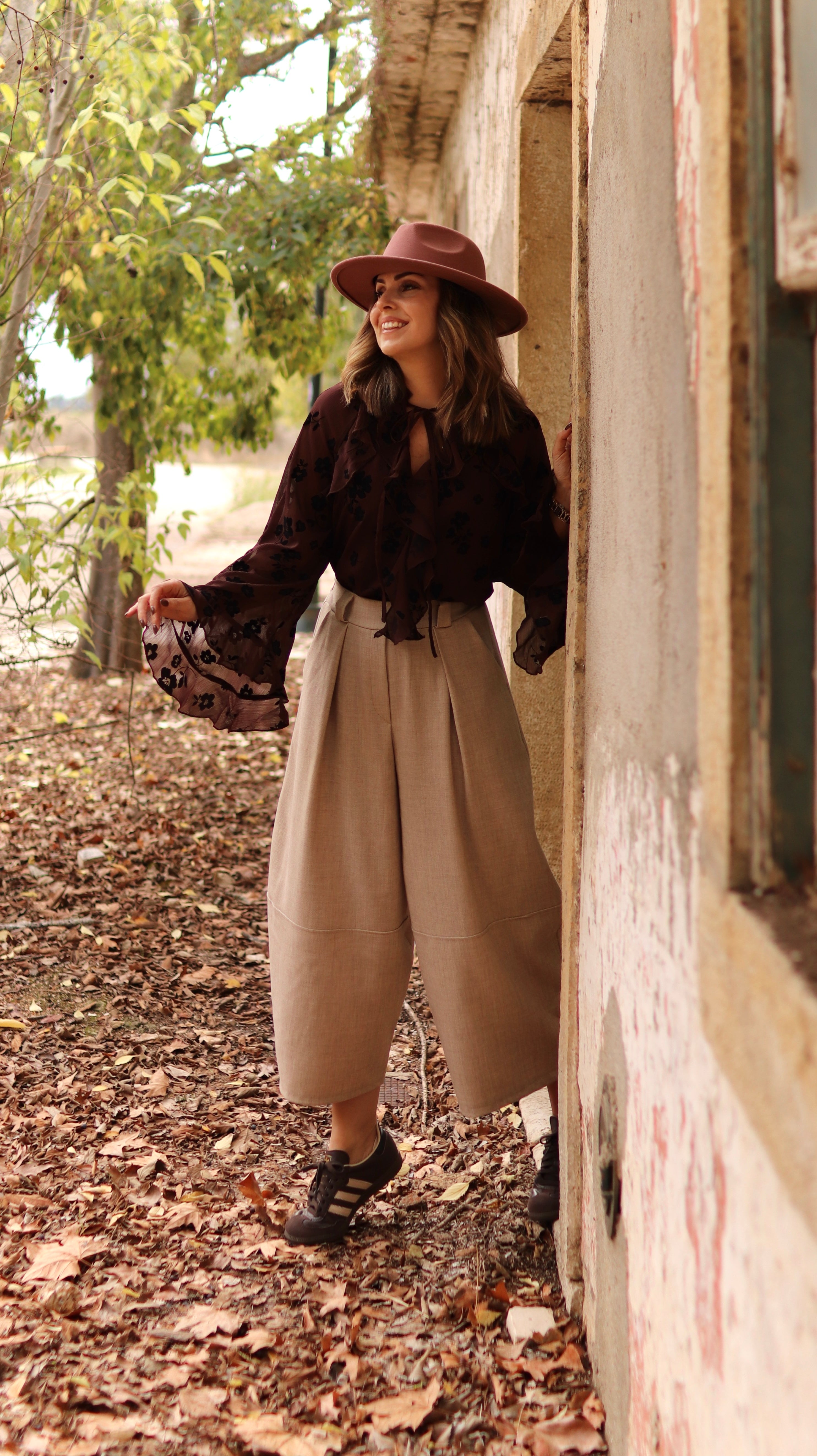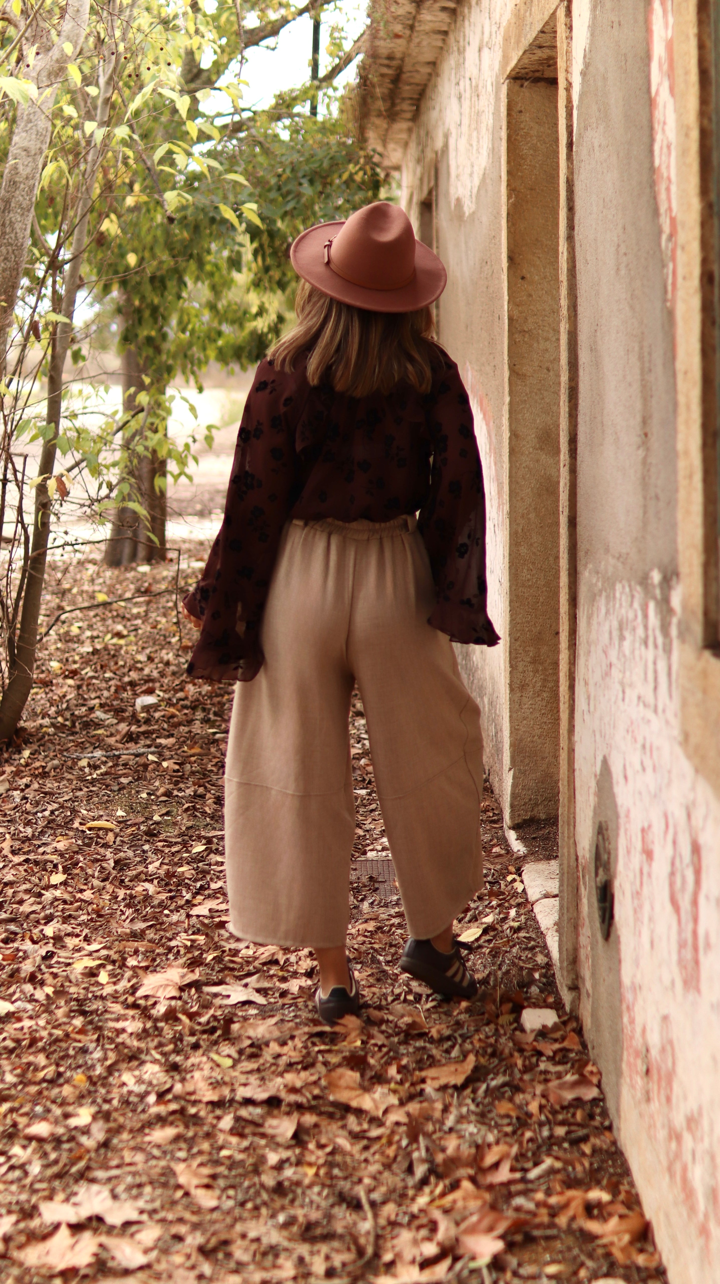 Têm corte largo nas pernas, comprimento pelo tornozelo e bolsos laterais.