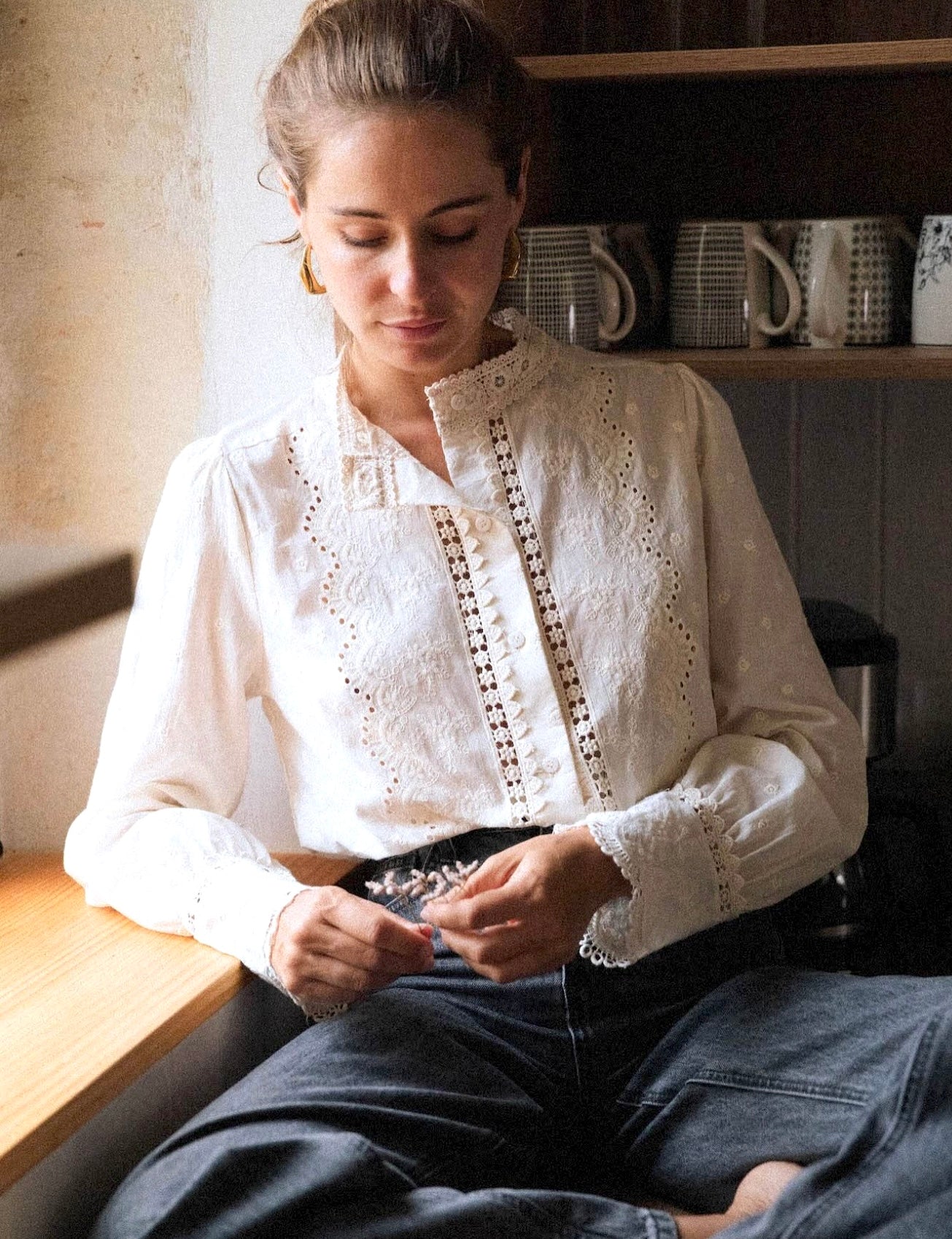 Cheio de detalhes e pormenores bonitos, este camiseiro é ideal para criarmos looks românticos e muito femininos.