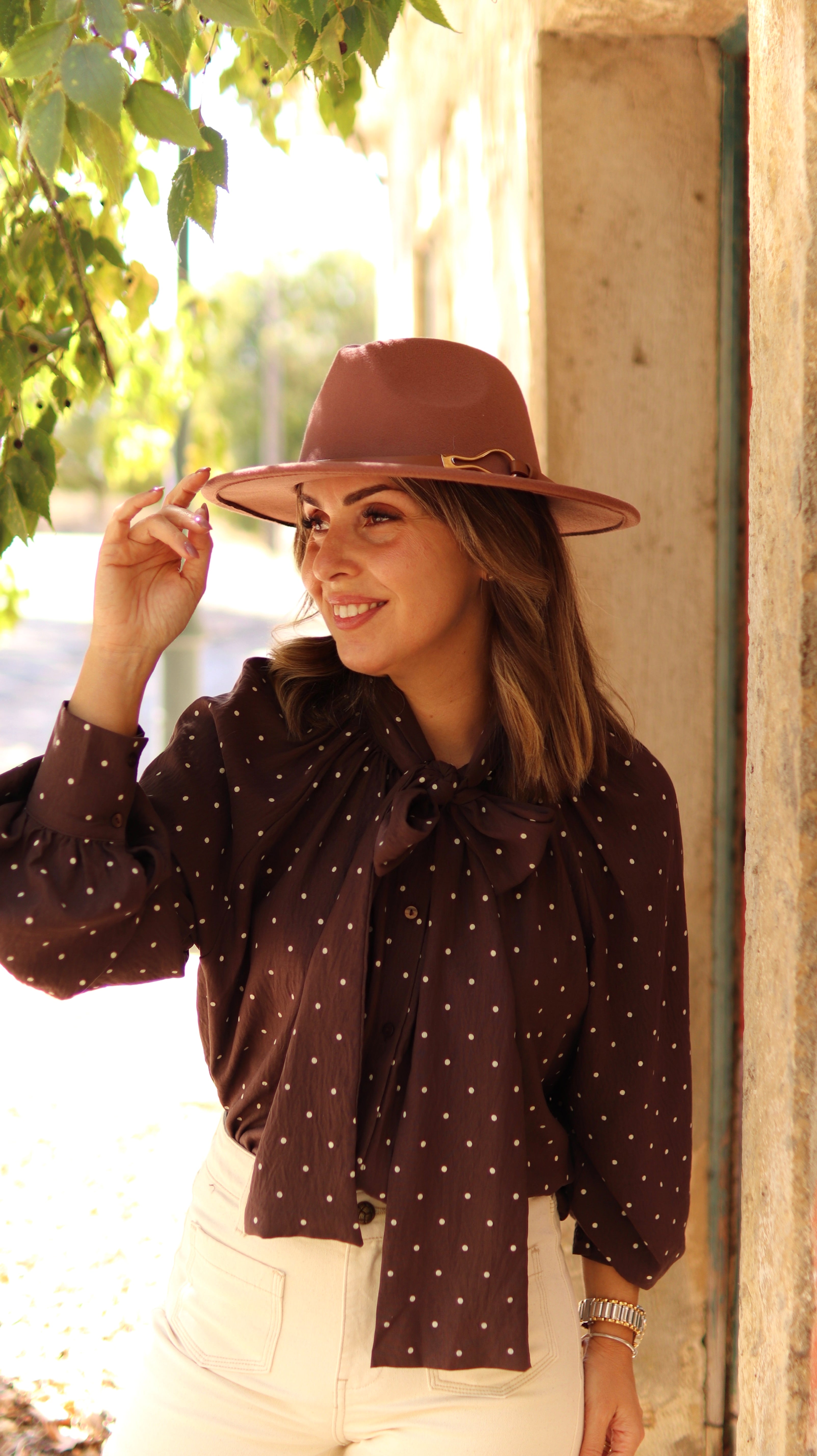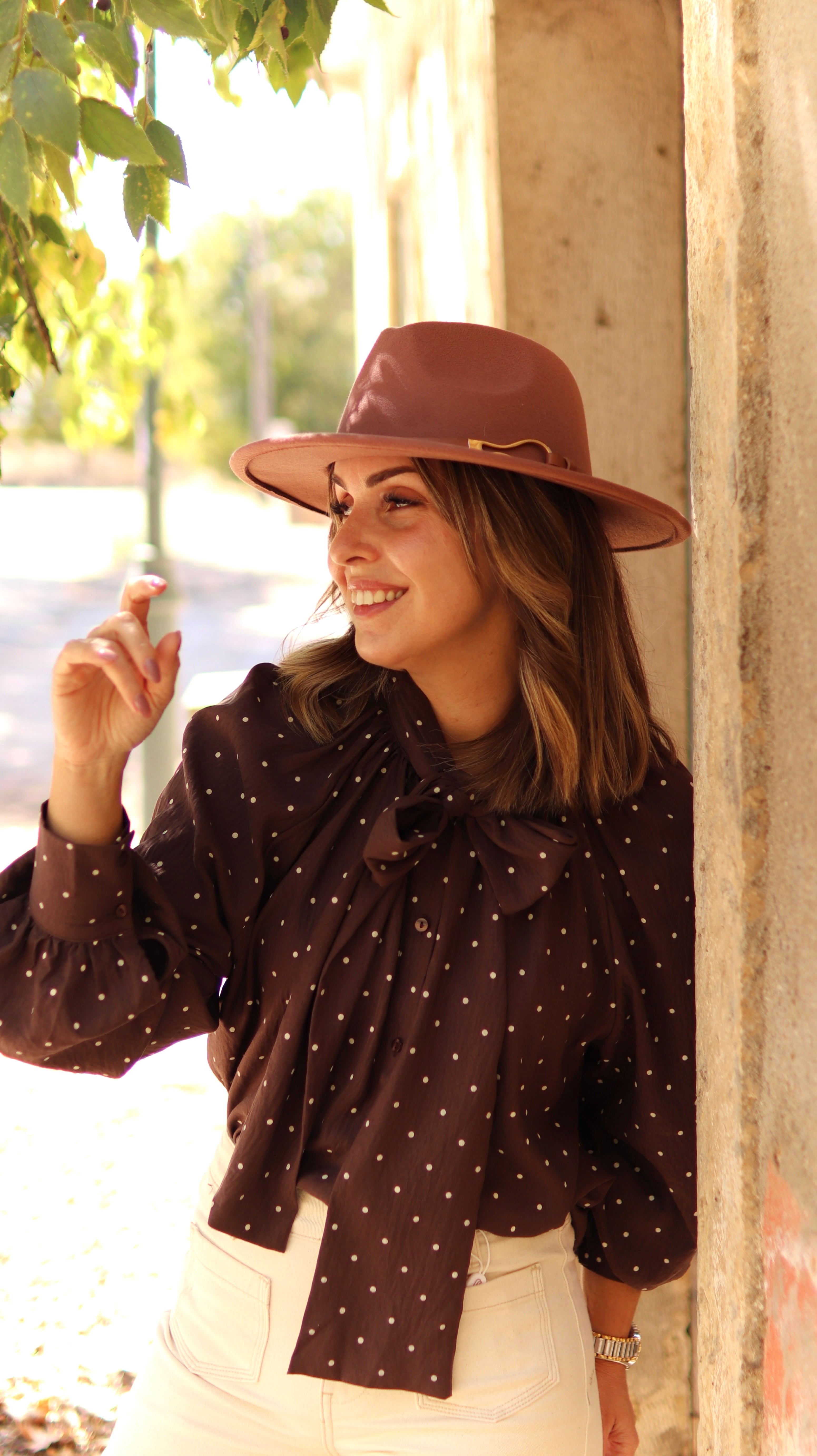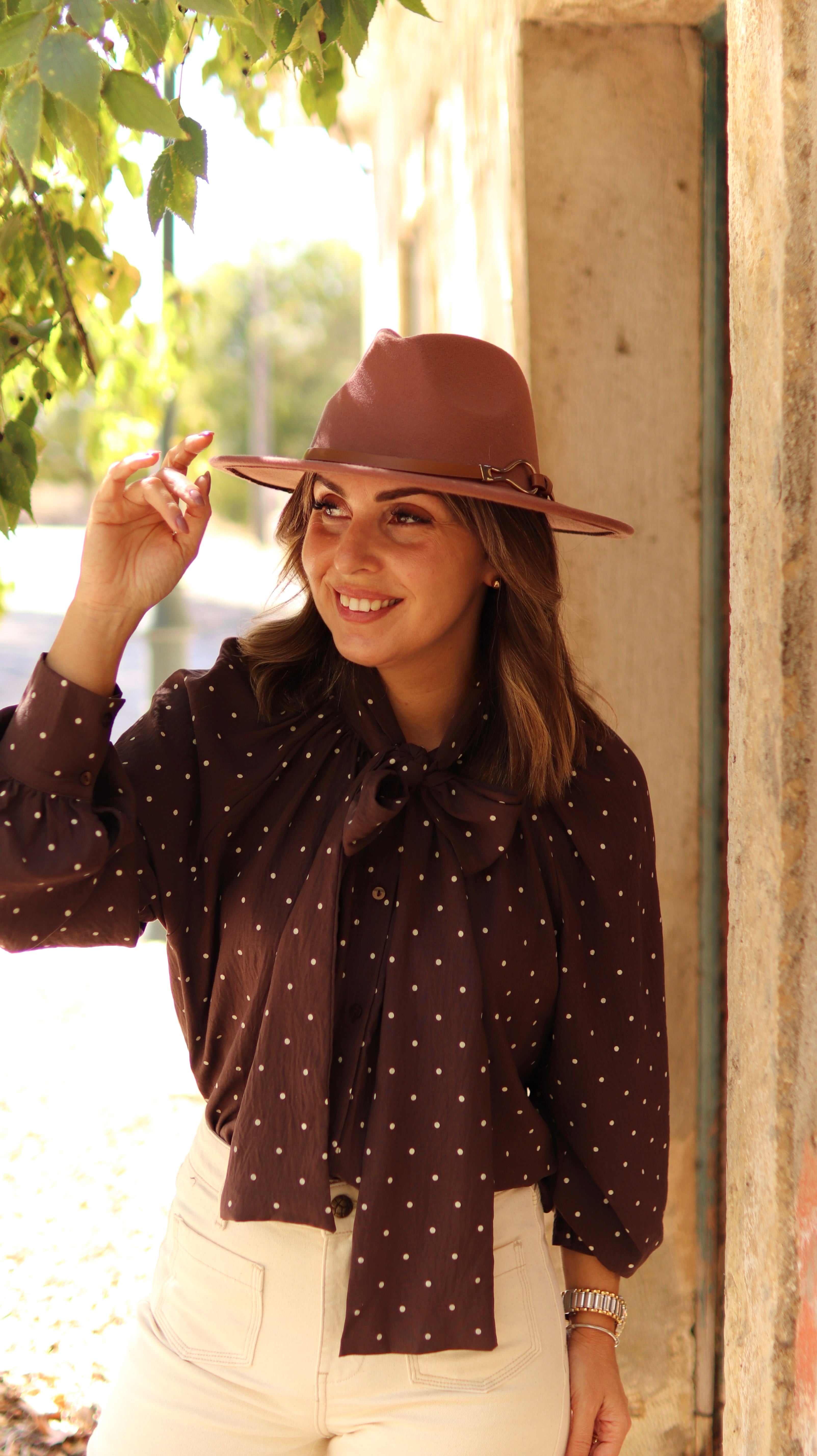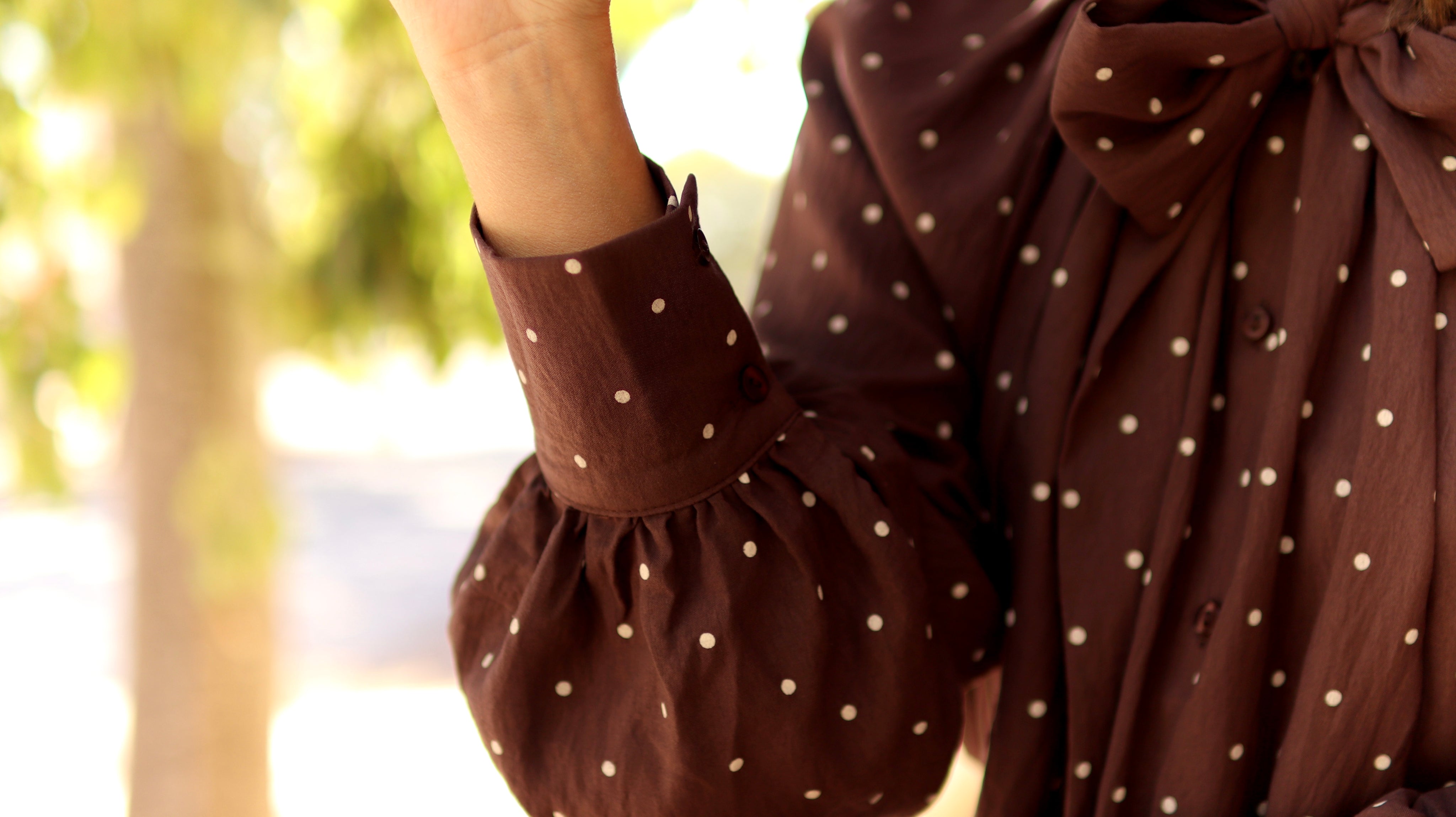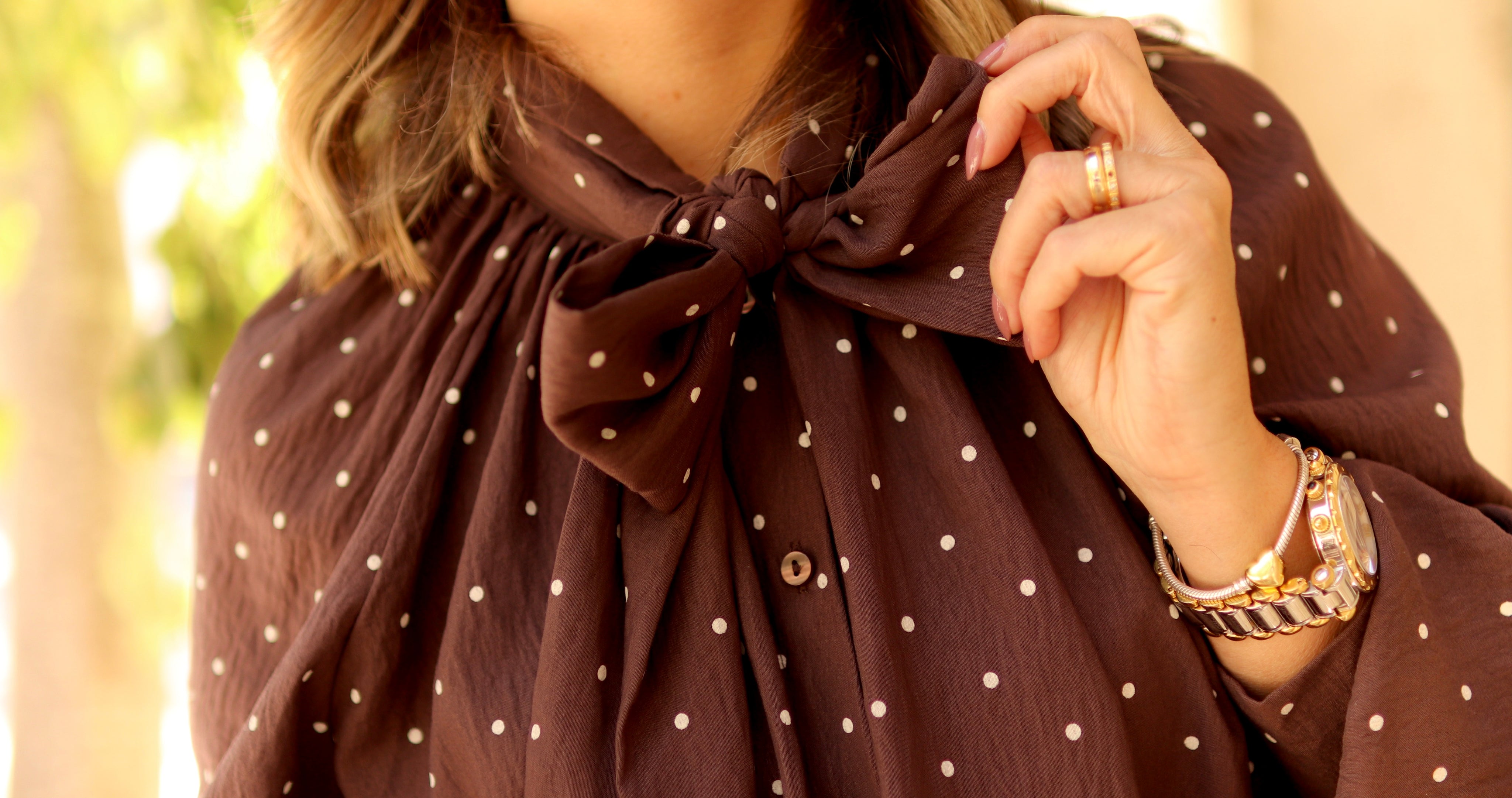 Camiseiro de laçada com padrão de bolinhas.