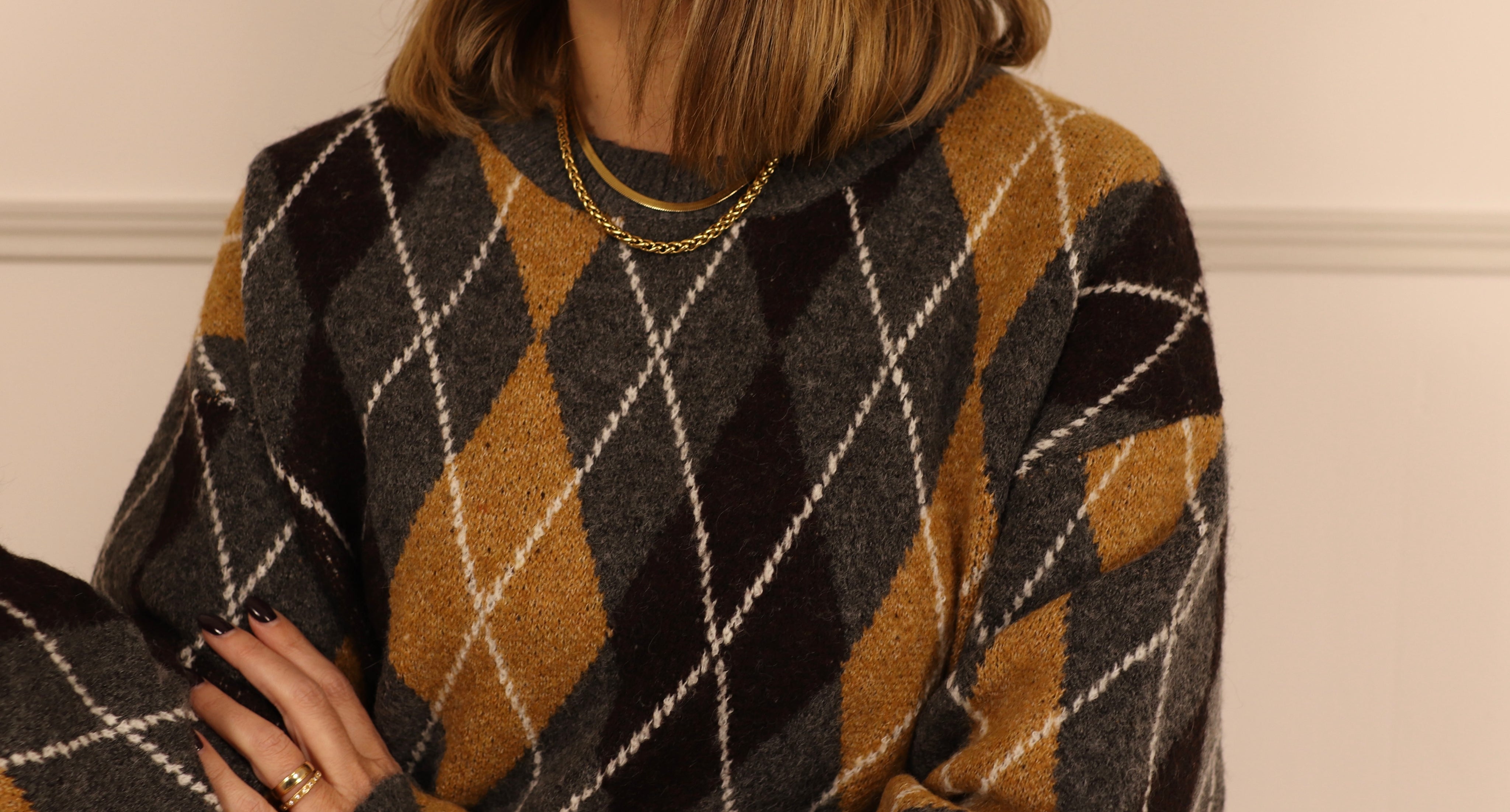 É a altura ideal para renovarmos o nosso closet e esta camisola de losangos, que já se transformou na tendência preferida deste inverno, é perfeita para construírem looks confortáveis e modernos.
