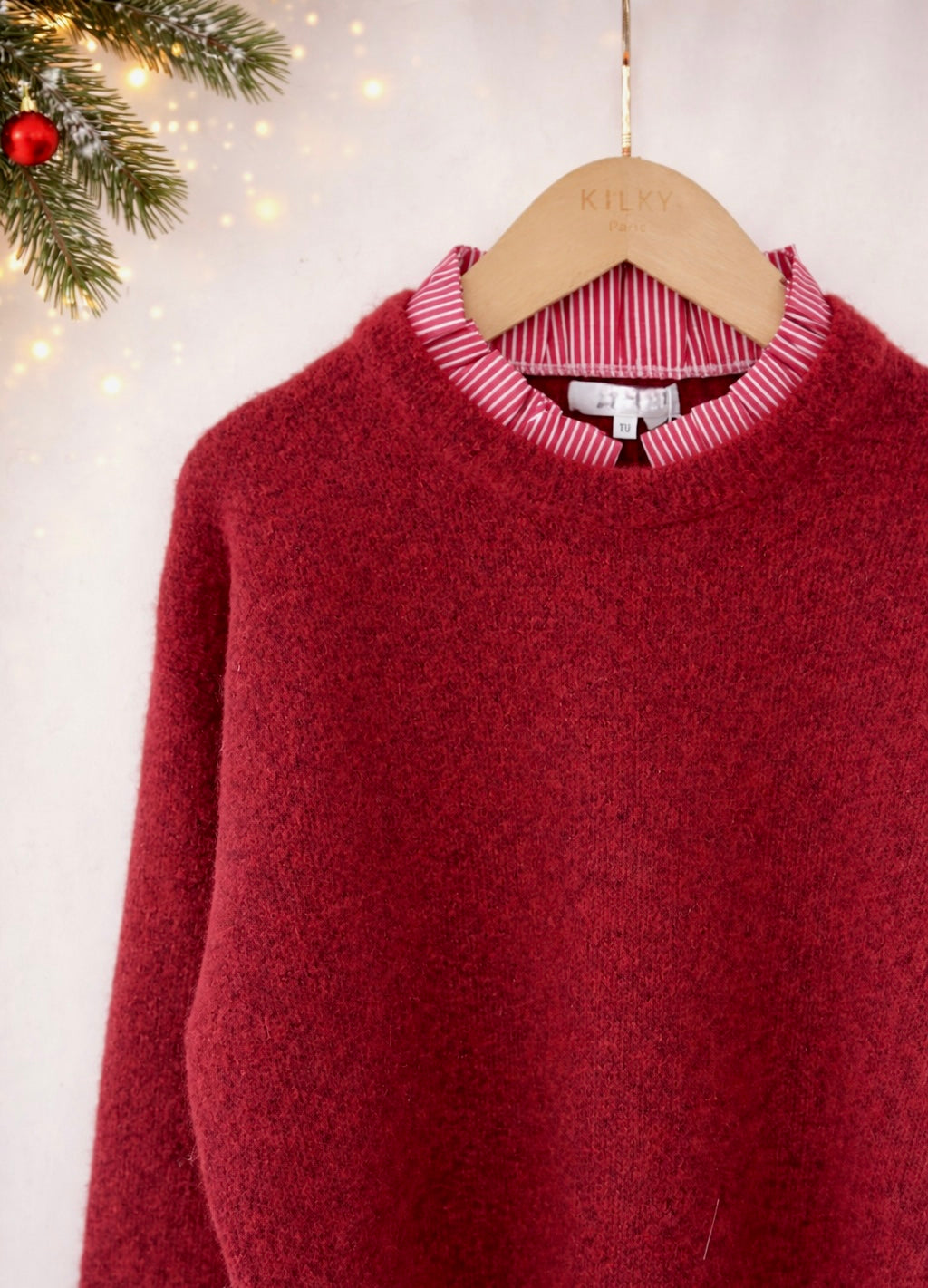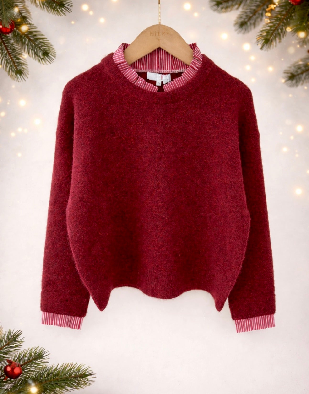 Camisola de malha com aplicação de gola/camiseiro e punhos/camiseiro.