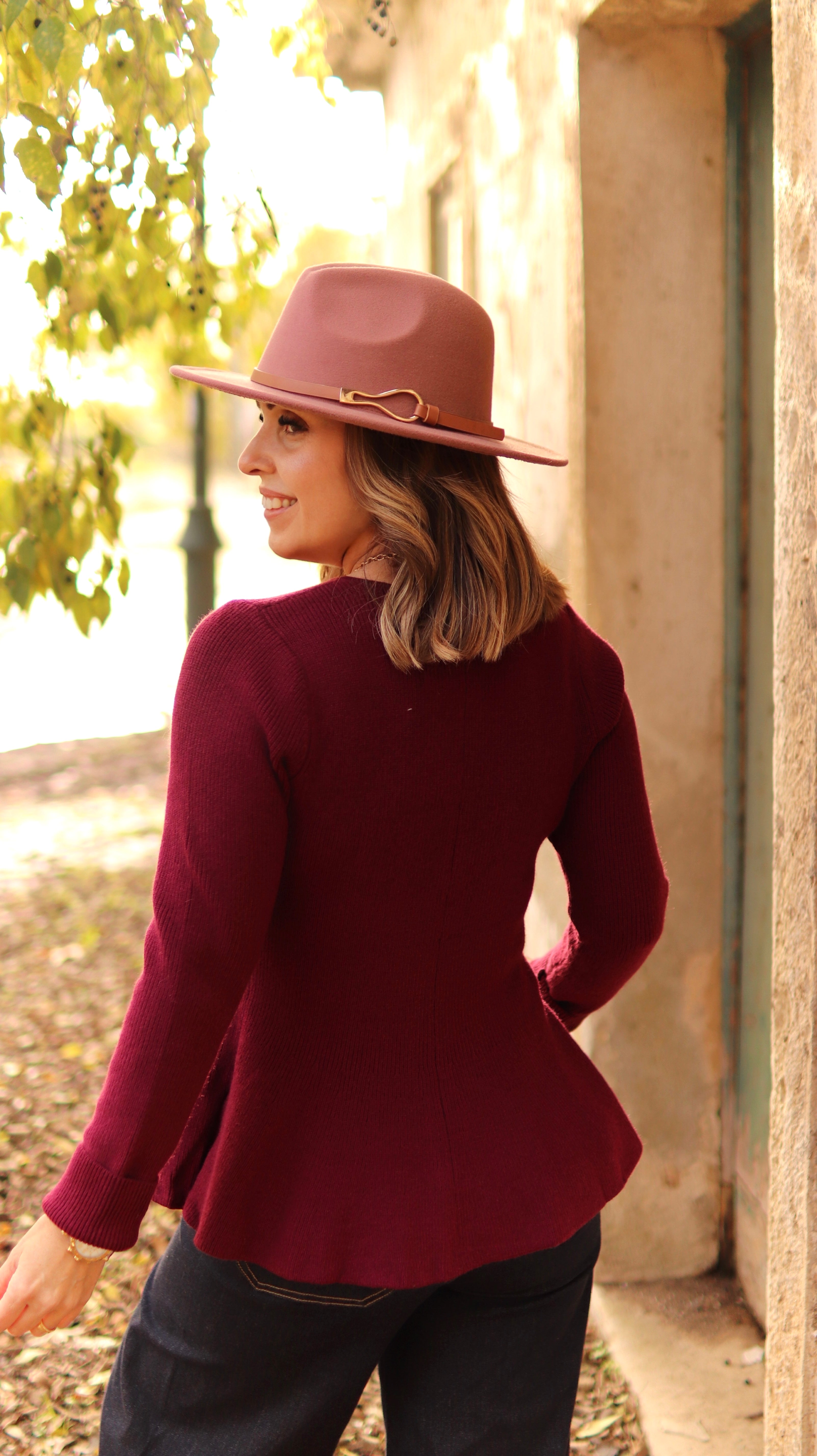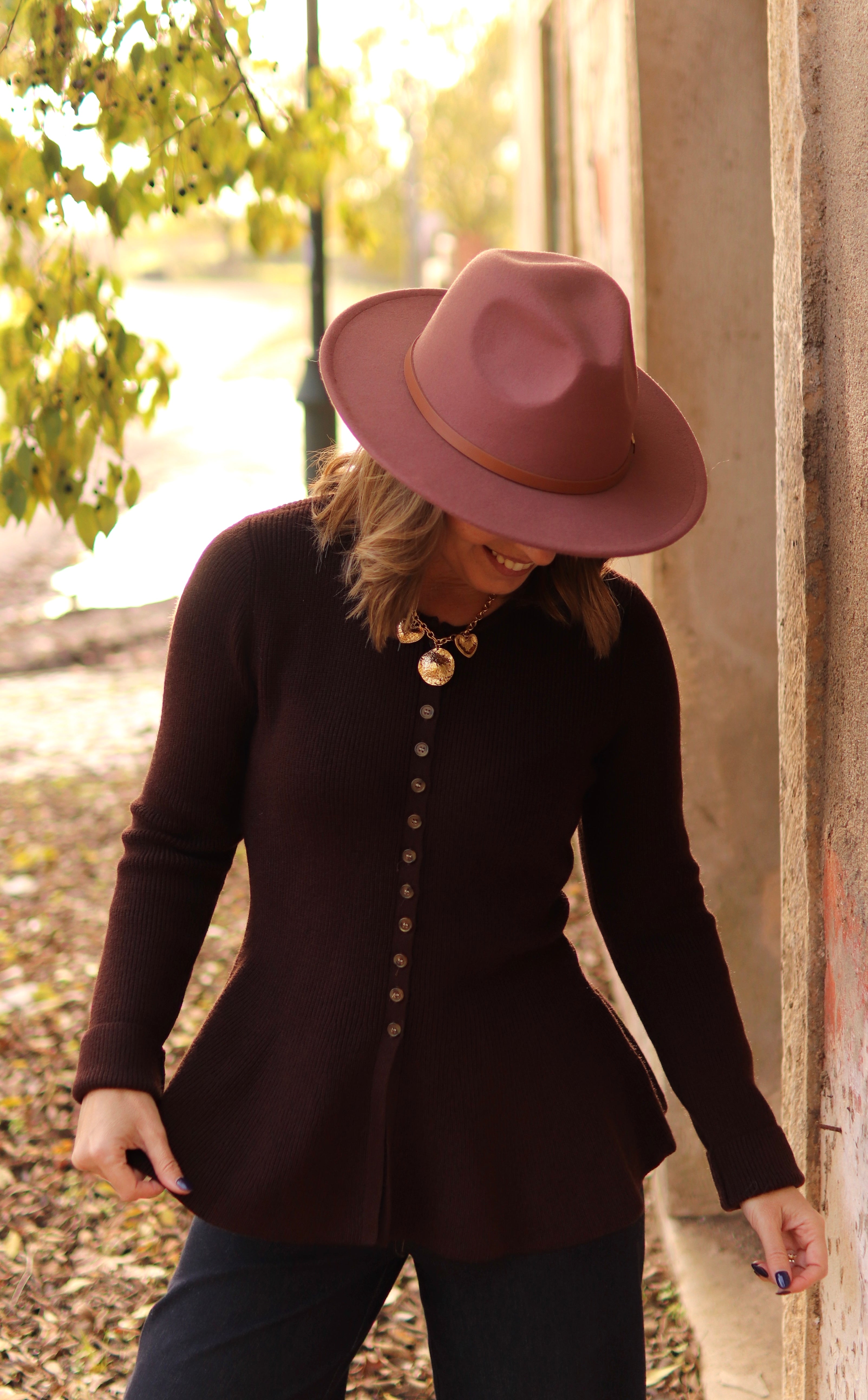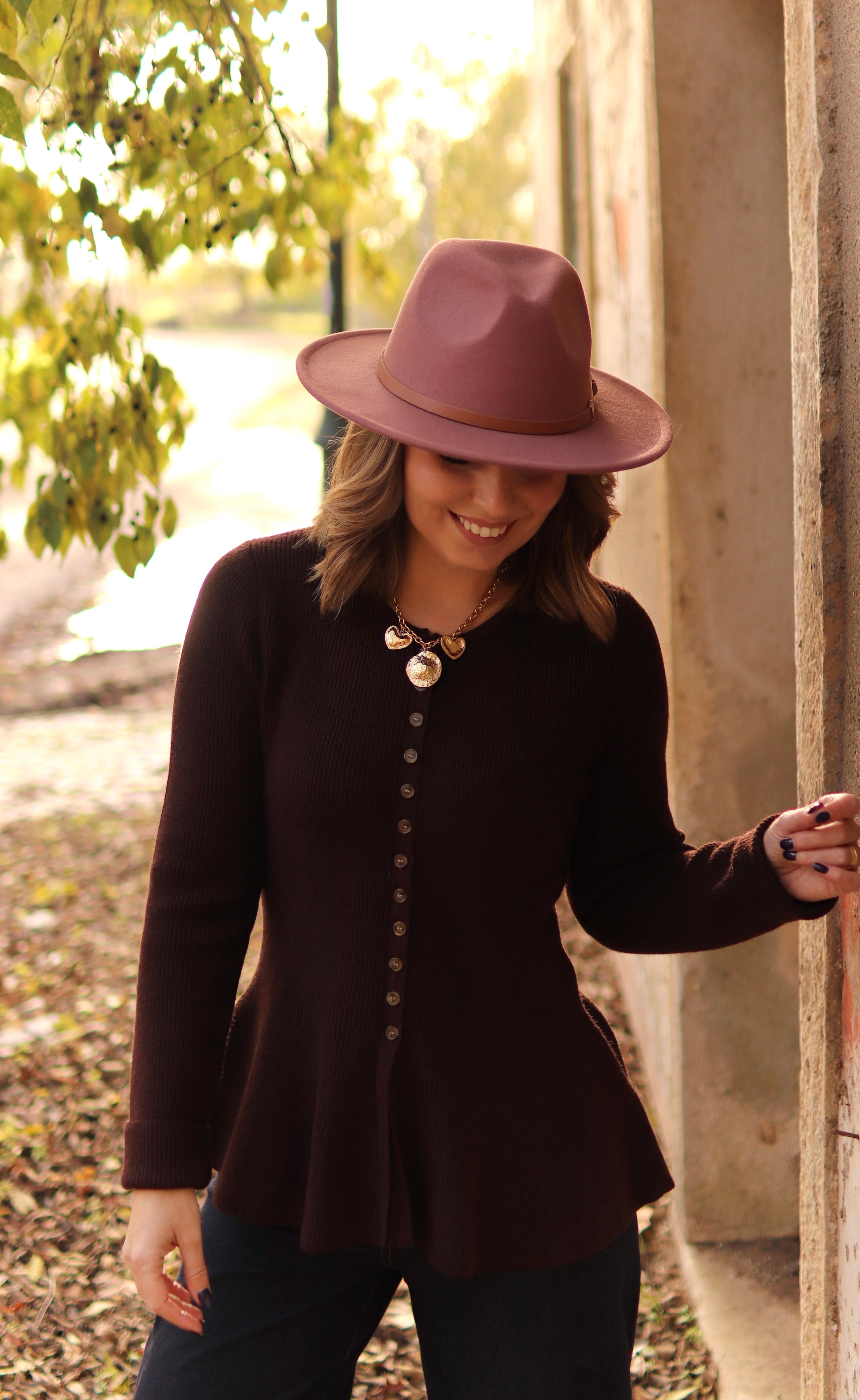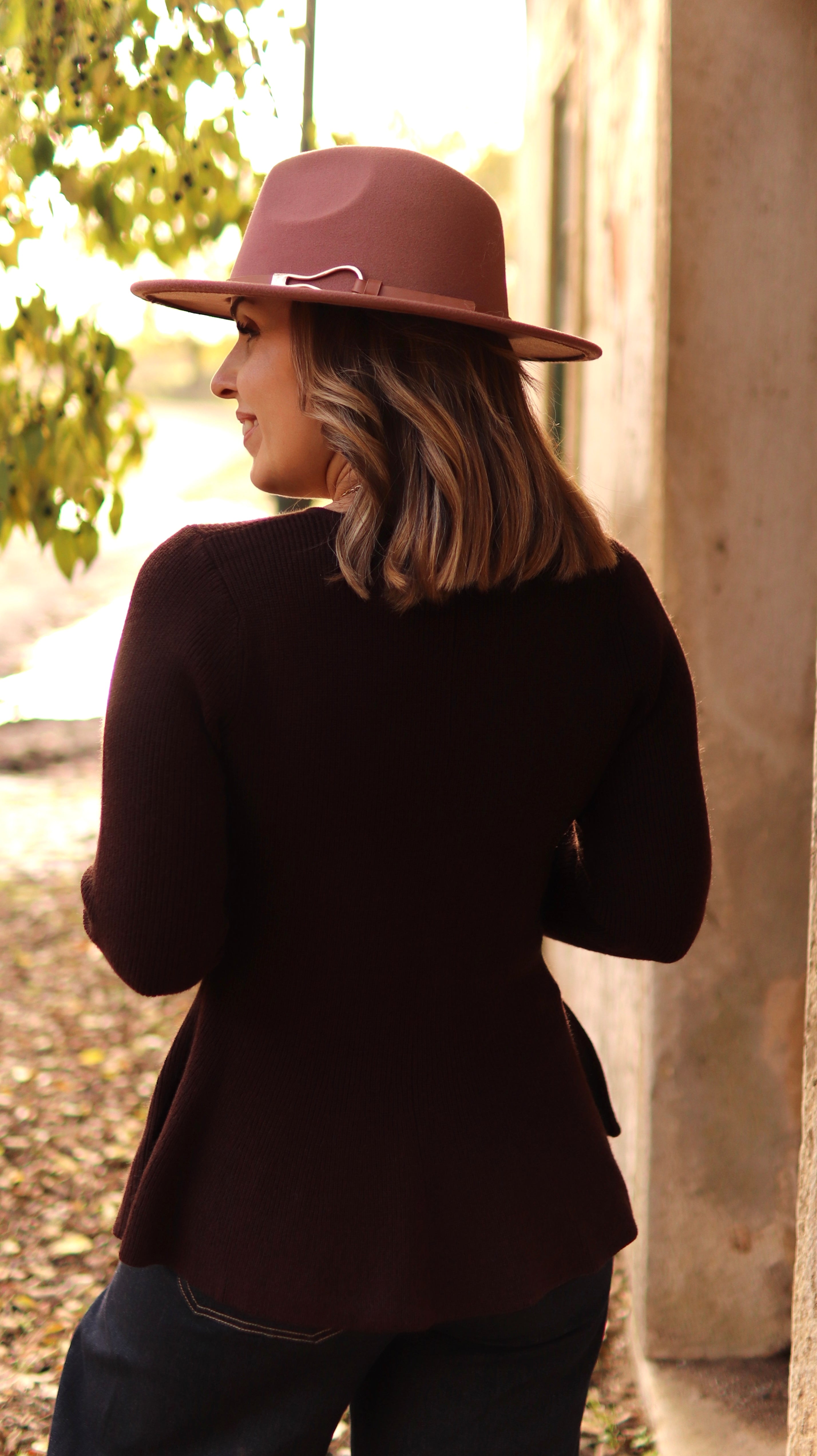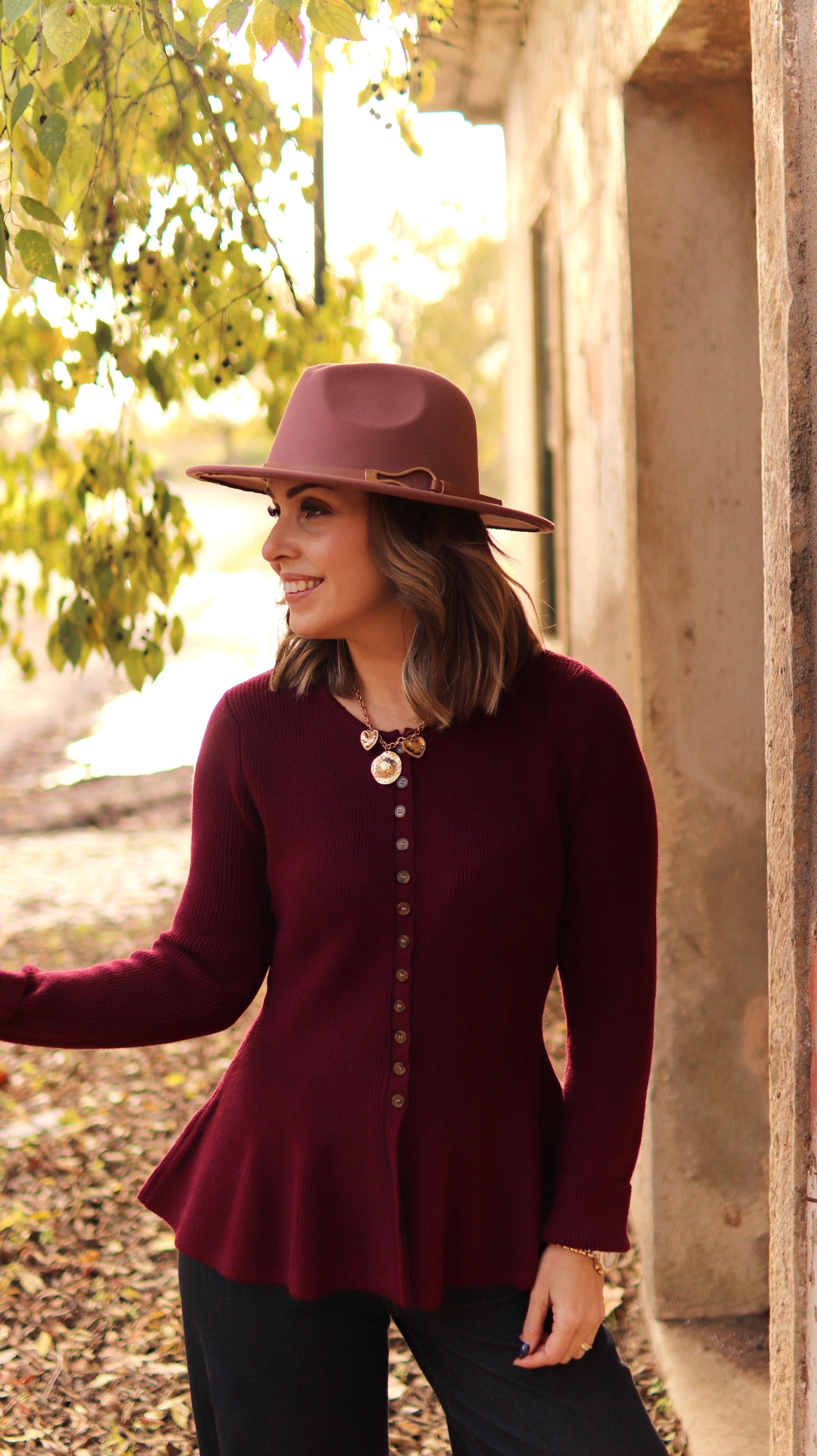 Tem botões à frente e o folho largo na terminação faz dele uma peça diferente, feminina e romântica.