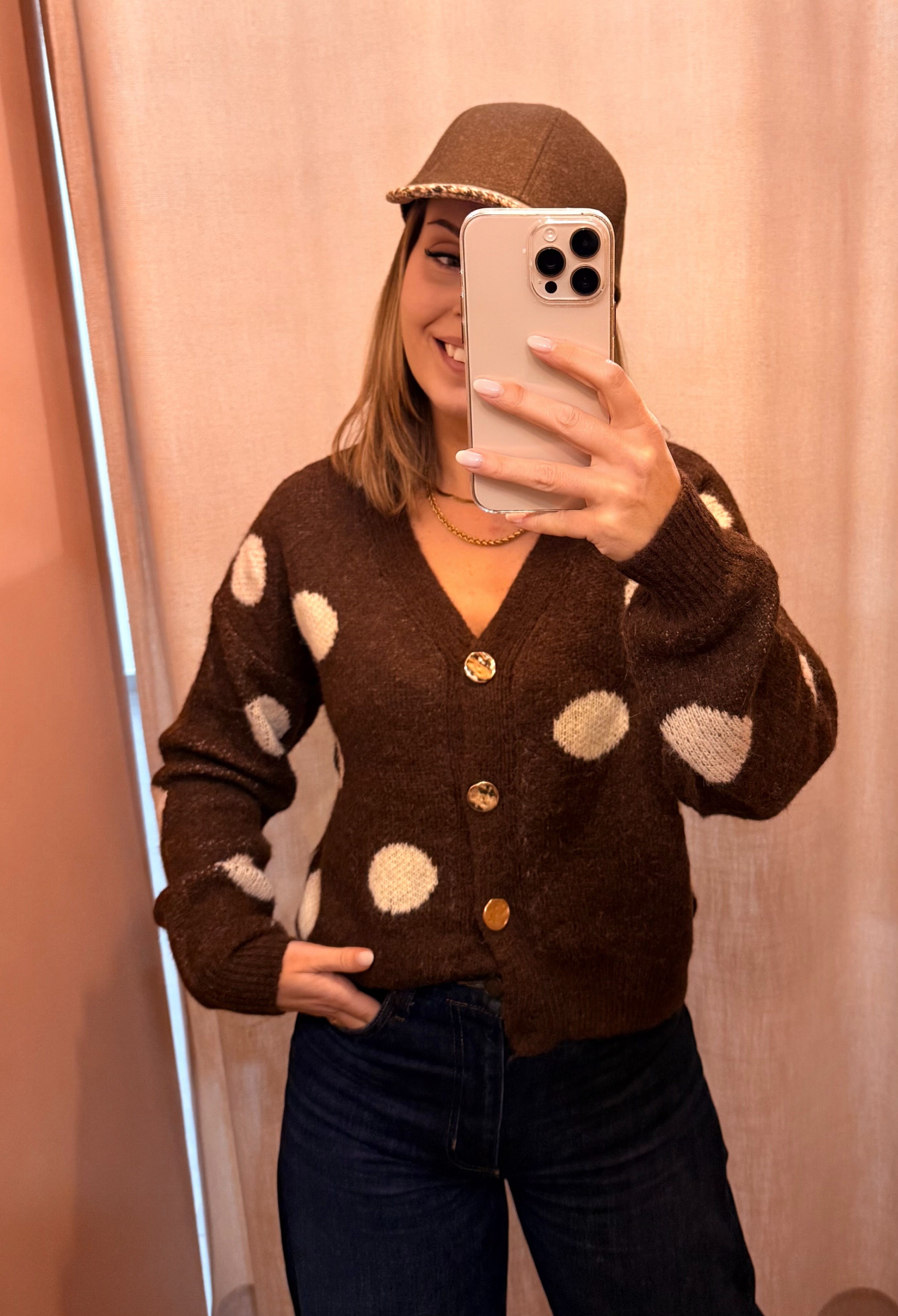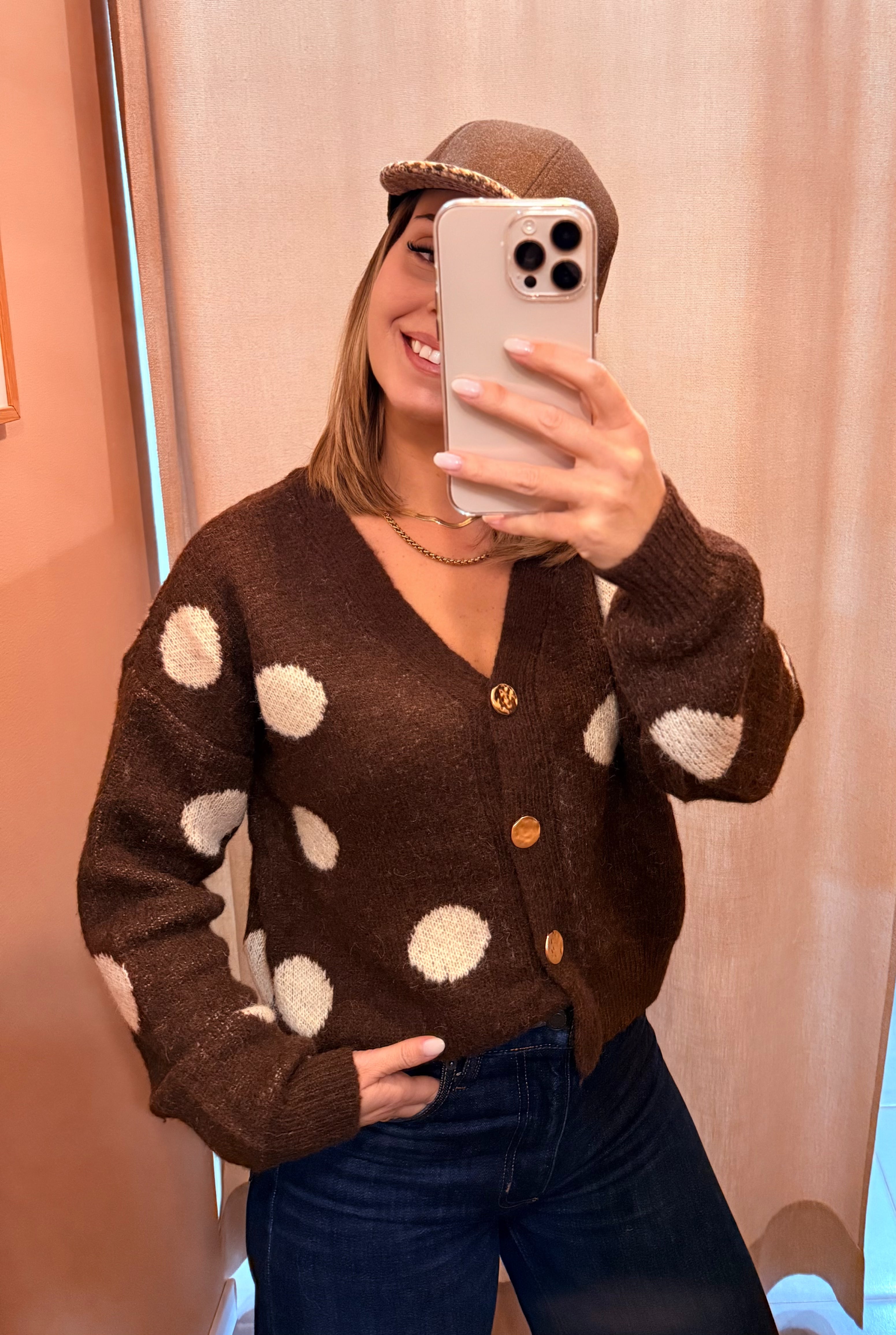 Com corte direito, decote em "V" e botões dourados.