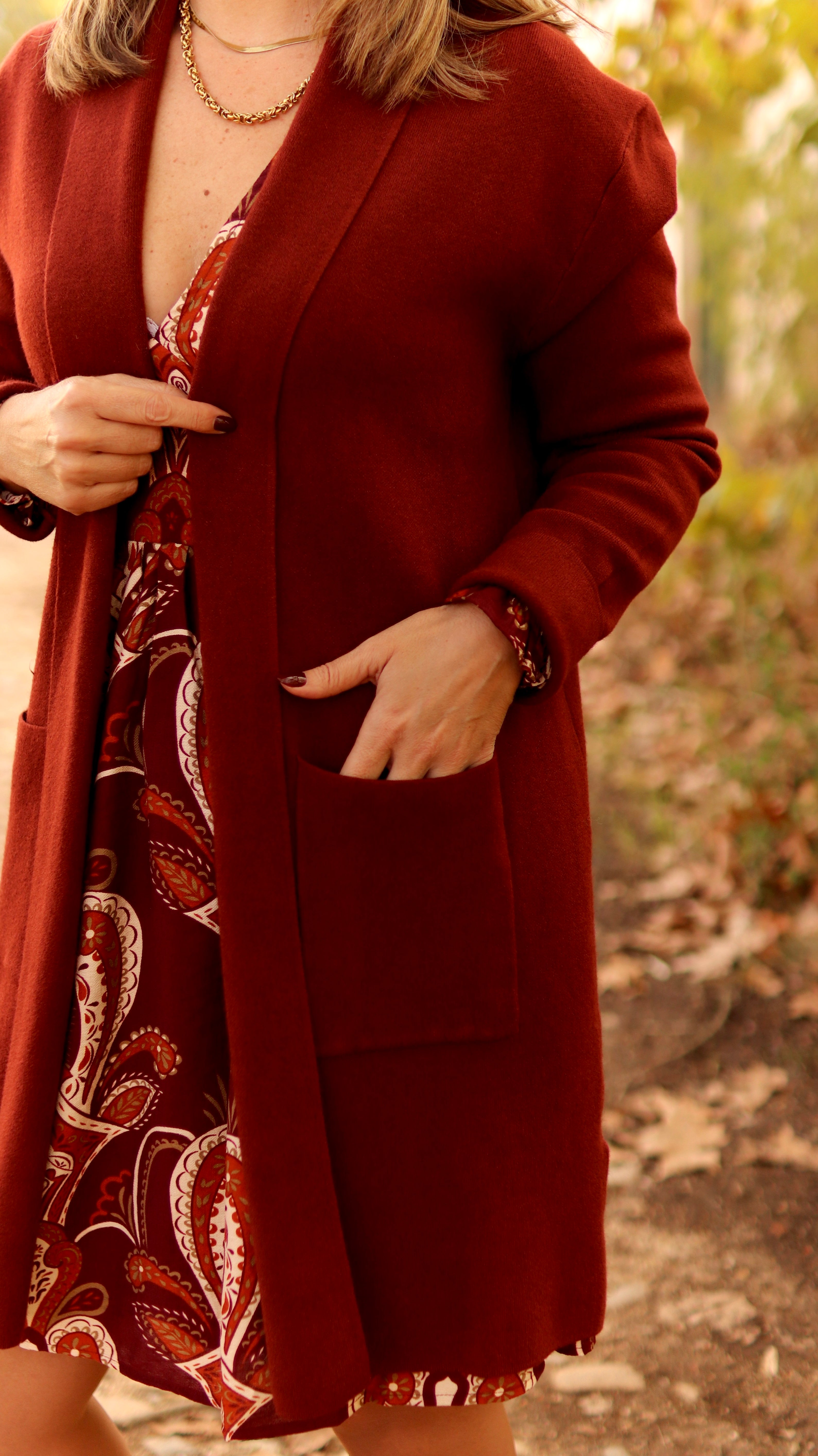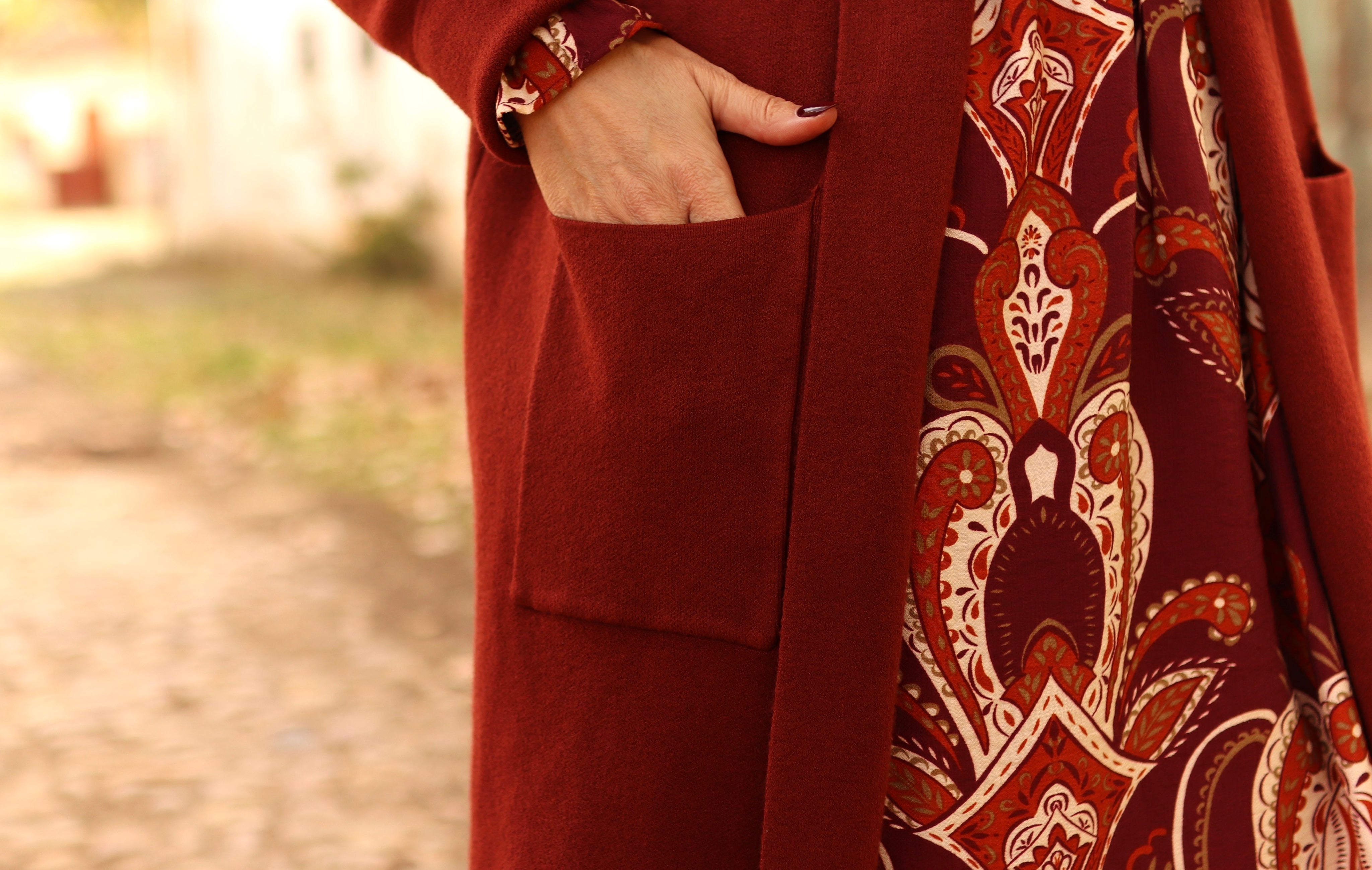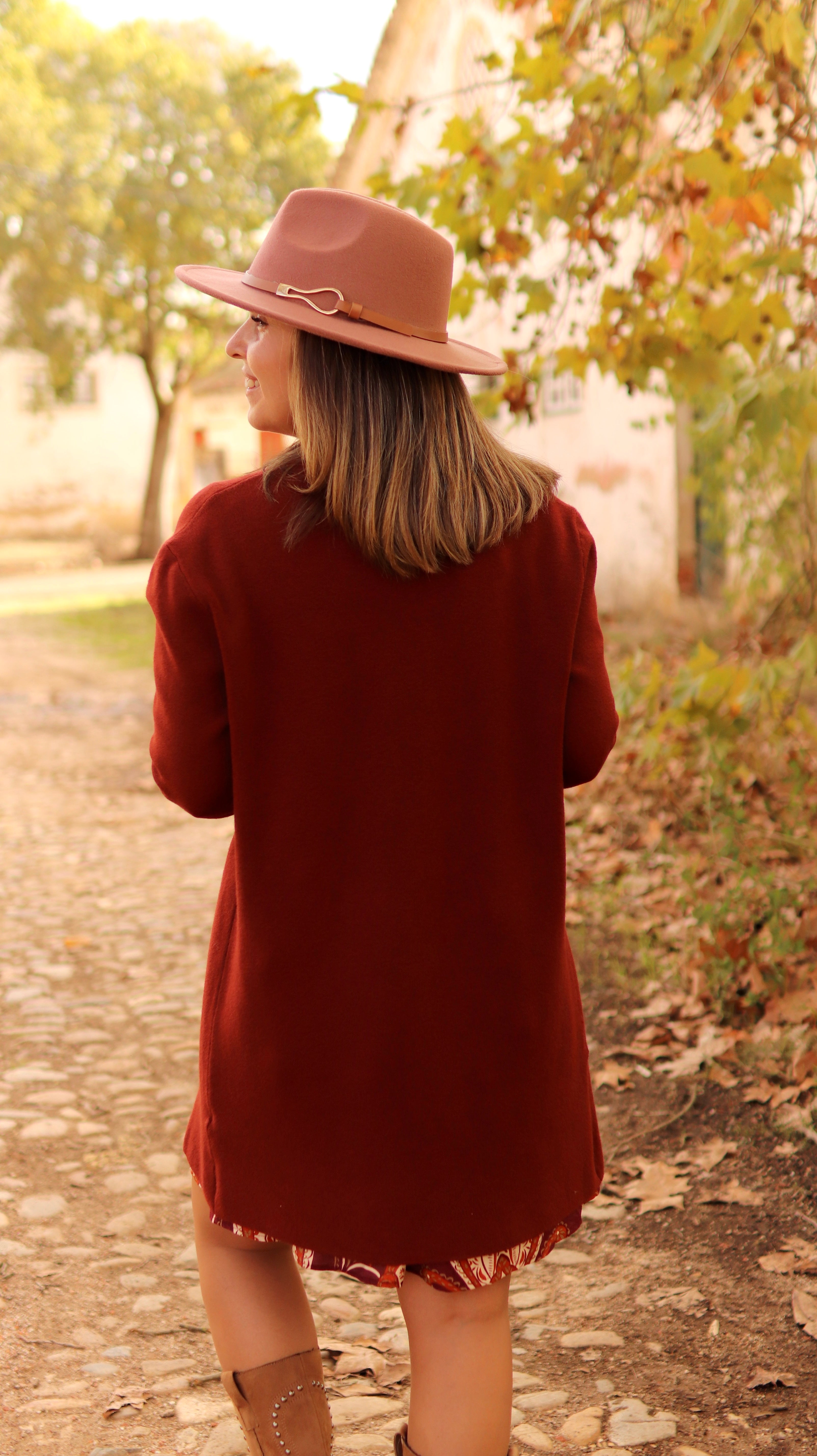 De malha já mais texturada, este casaco tem o corte ideal para ser conjugado com vestidos.