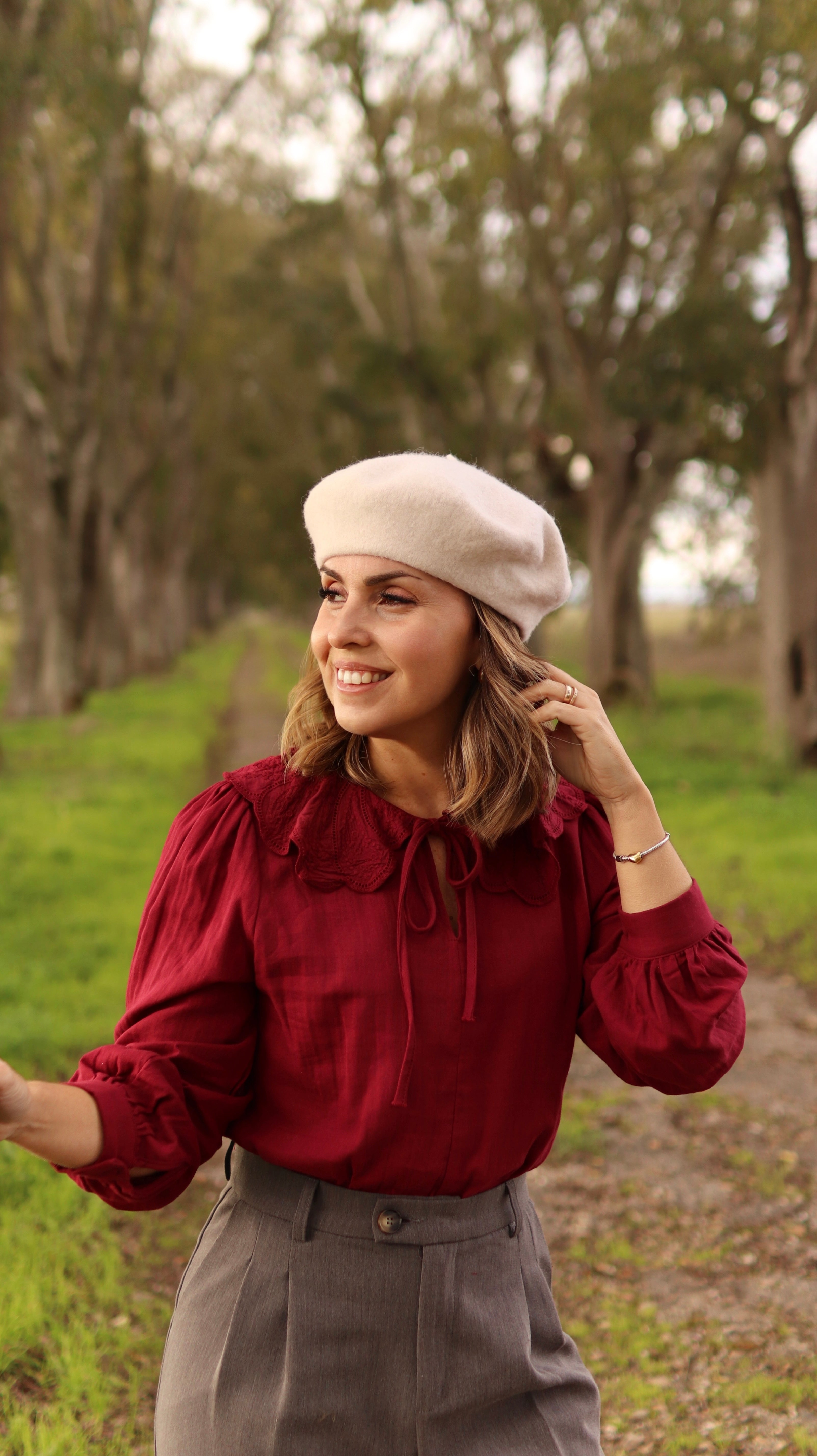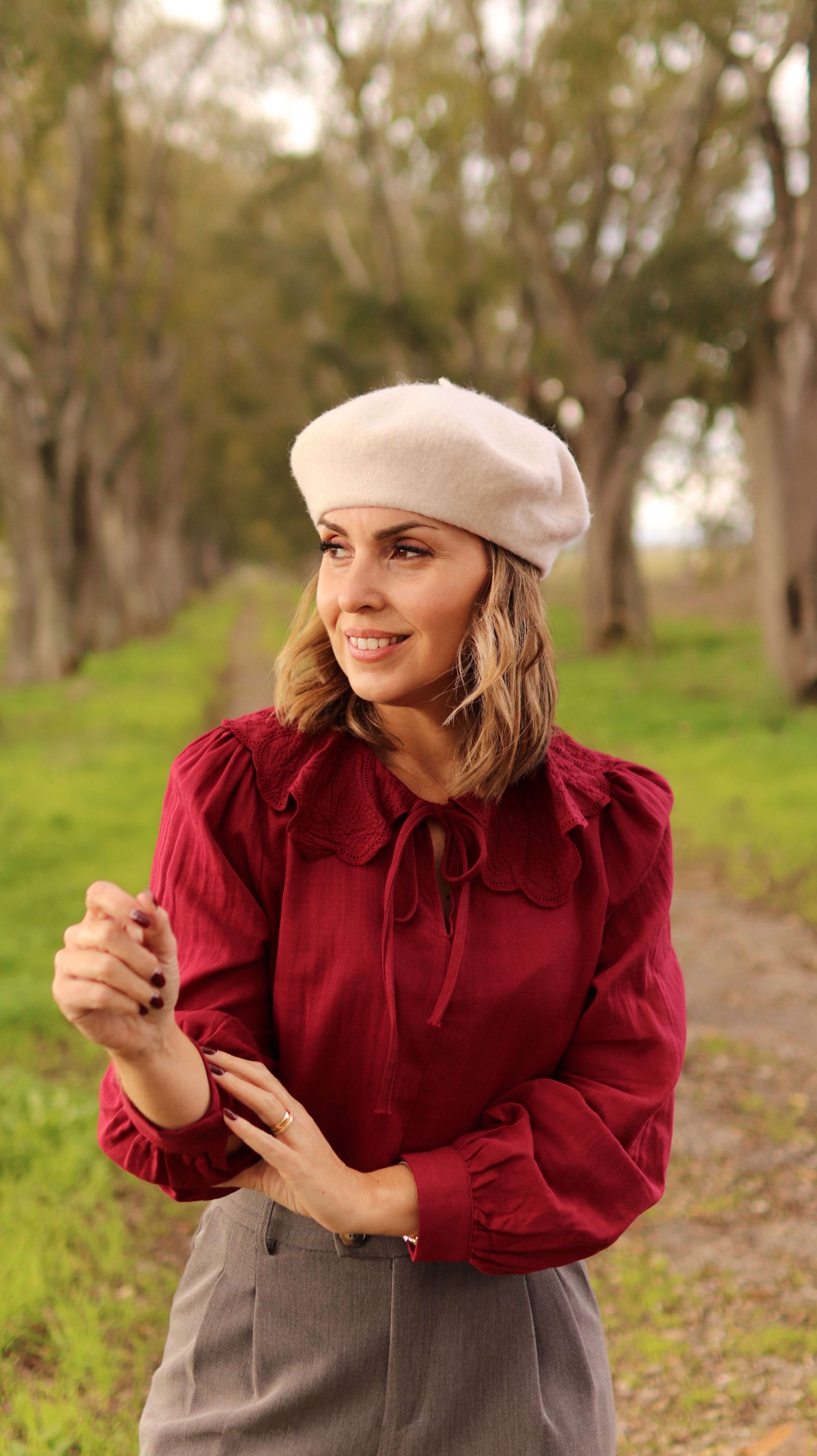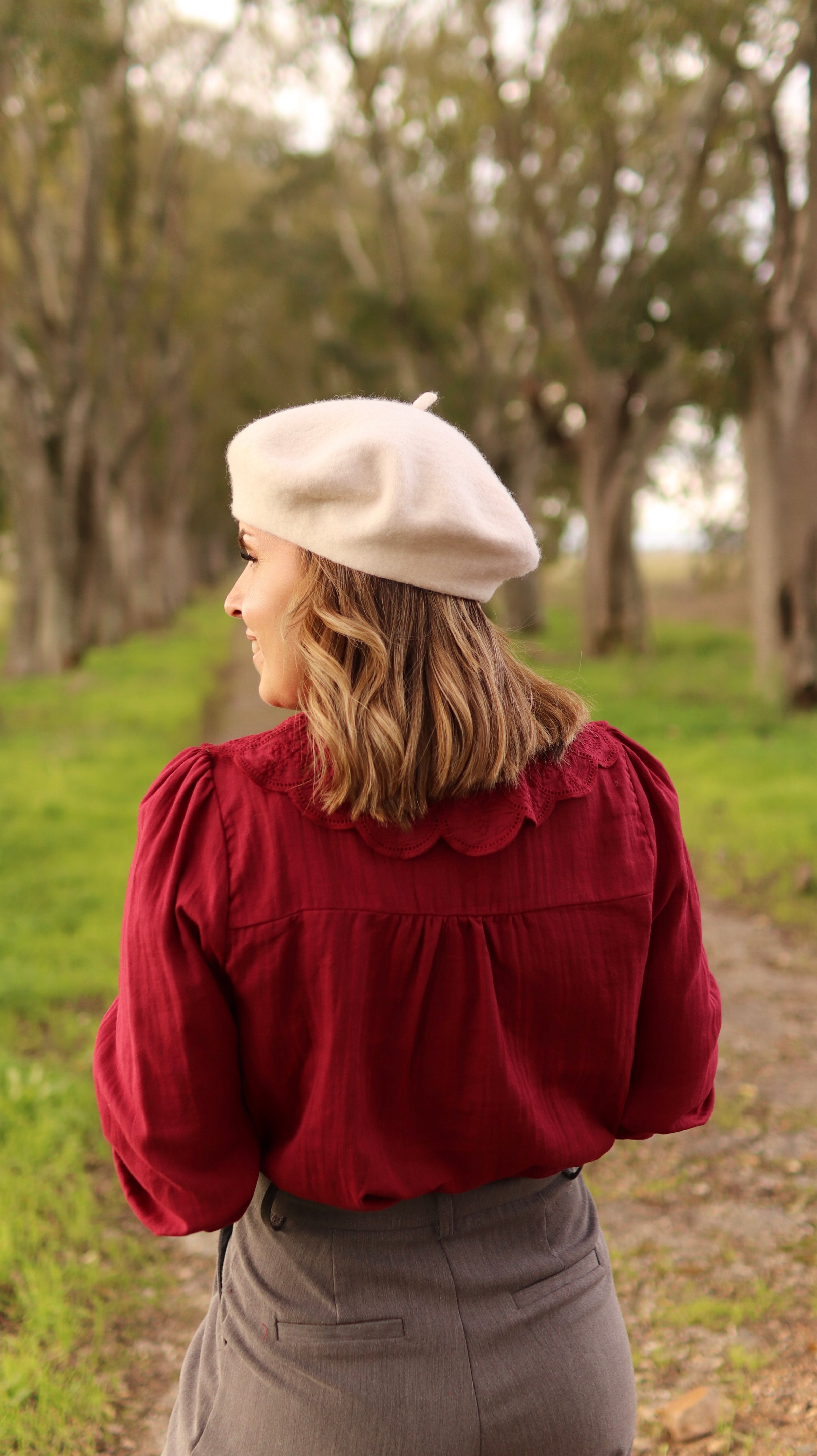 A cor já faz lembrar a época festiva que se aproxima e e gola "babete" é o destaque nesta peça.