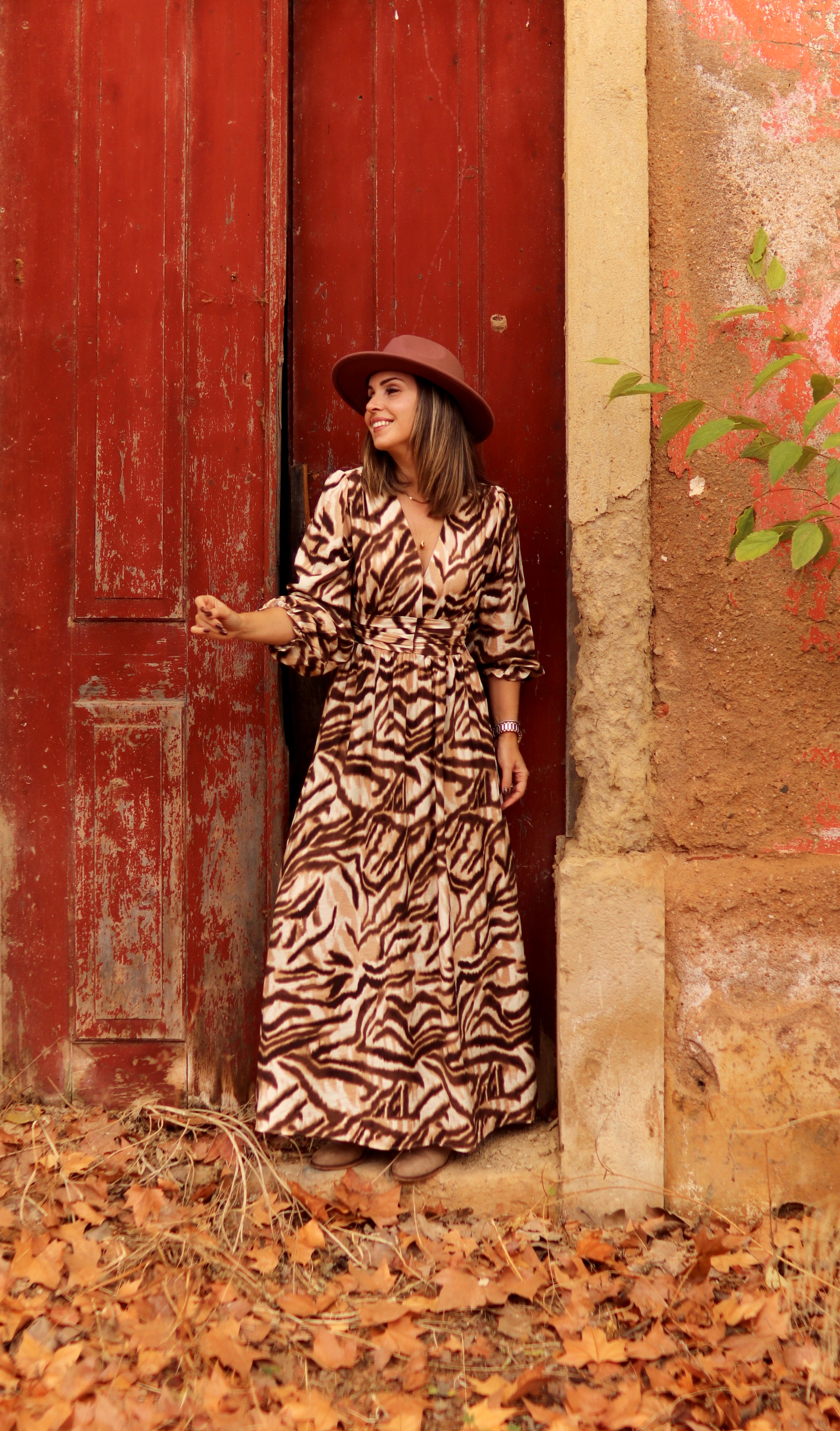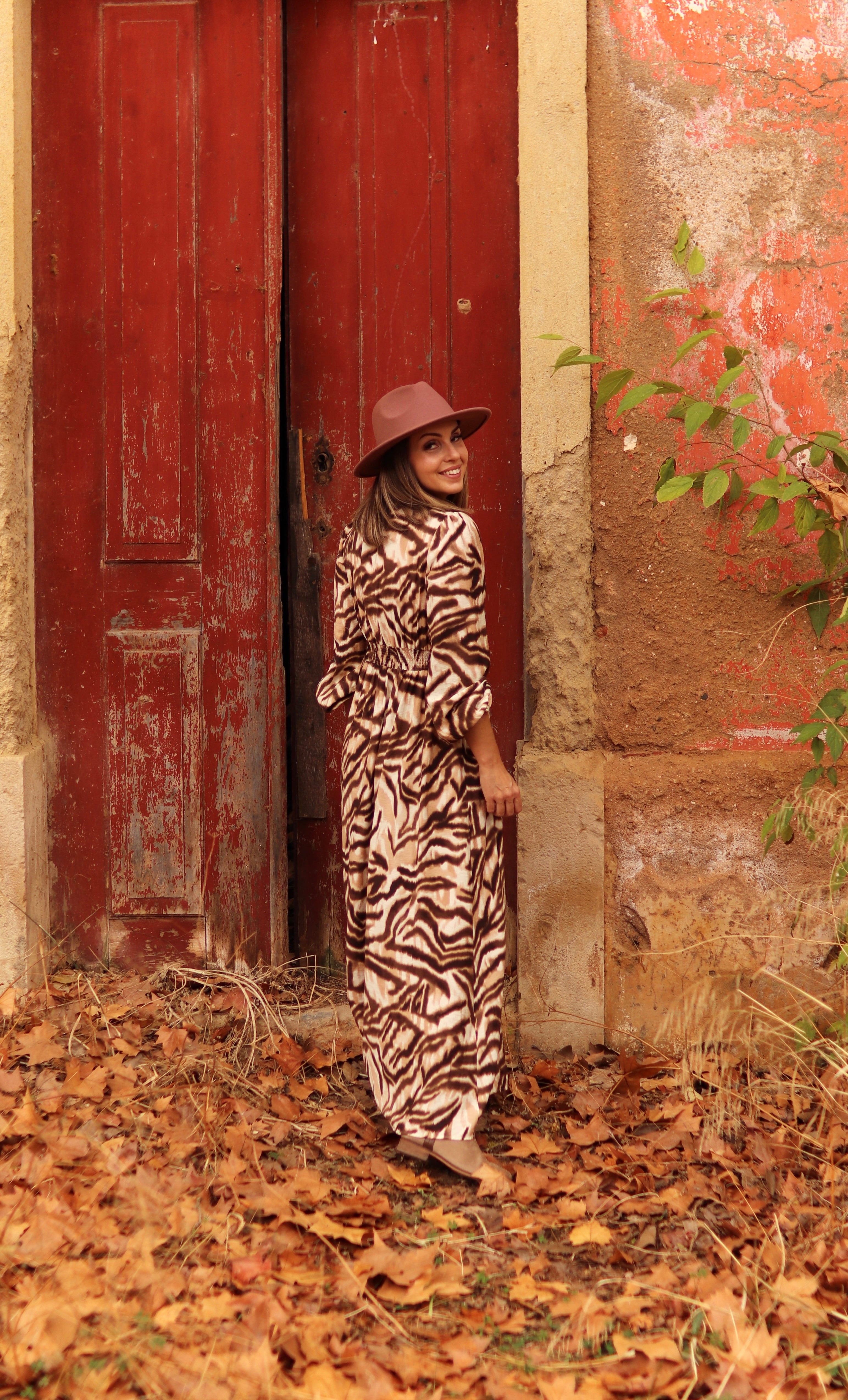 Estampa perfeita e corte elegante…, mais um vestido de outono que não conseguimos resistir.