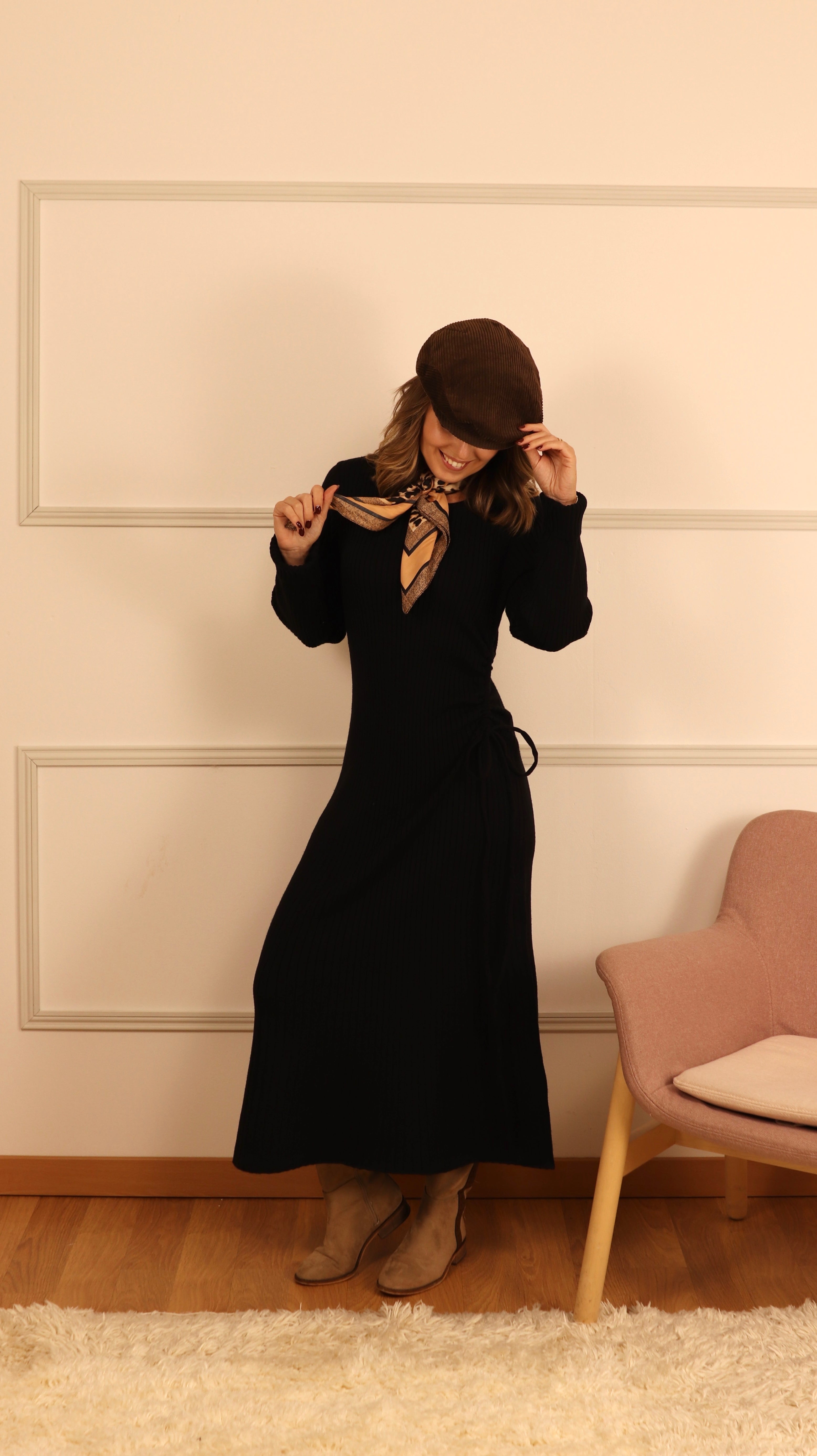 Em malha canelada este vestido de comprimento midi é ideal para o outono/inverno e confere-nos uma sensação ótima de conforto protegendo-nos do dias mais frios.